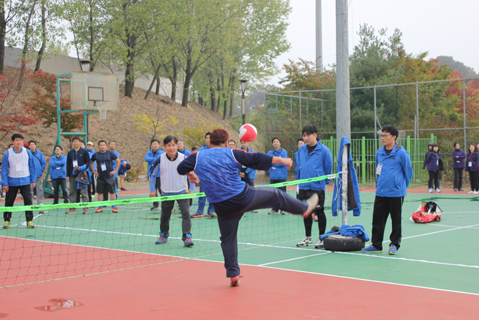 이어서 펼쳐진 족구 경기에서도 선수들의 기량이 발휘됐다. 명승부 끝에 청팀이 백팀을 누르고 승점을 획득했다.