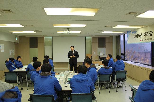 실크로드의 <2015년 대리급 역량강화 워크숍>이 경기도 오산에 위치한 롯데인재개발원에서 실시됐다. 11월 19일부터 2박 3일의 일정으로 구성된 이번 워크숍에서는 대리직급에 필요한 중간 계층 역할 학습 및 손자병법의 사례를 적용한 업무 전략 수립 등의 다양한 교육이 이뤄졌다.