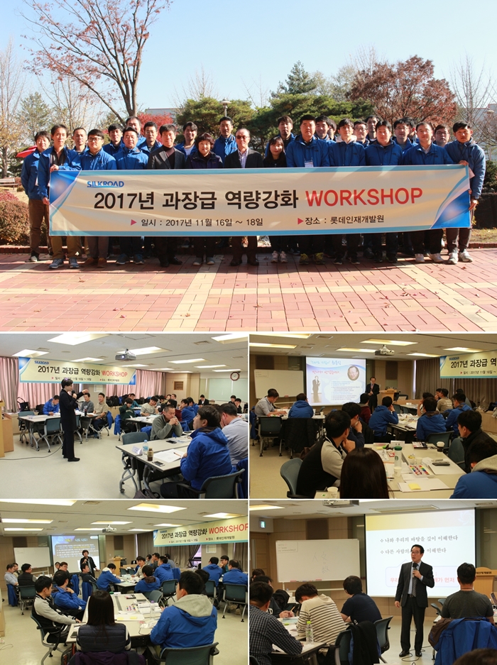 2017년 11월 16일부터 18일까지 경기도 오산의 롯데인재개발원에서 과장급 역량 강화 워크숍이 진행됐다. 이번 워크숍은 성과를 창출하는 과장리더십, 산업보안 Key-Point, 협업이 가능한 조직만들기(팀액티비티) 등 과장급 직원들에게 필요한 다양한 프로그램으로 구성됐다.
