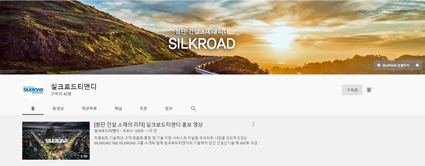 터널용 건설소재 분야의 미래를 책임지는 실크로드티앤디가 최신 트랜드에 발 맞춰 유튜브 채널을 개설했다.