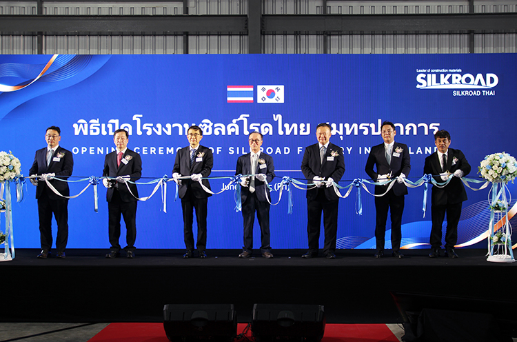 실크로드태국 사뭇쁘라깐 공장은 12,618㎡ 부지에 최첨단 생산 설비를 갖춘 스마트 공장으로, 연간 84,000톤의 혼화제 생산 능력을 보유하고 있다. 이번 공장 준공을 통해 태국에서의 입지를 강화하고, 건설 산업 품질 향상과 안전성 강화에 앞장설 계획이다. 특히 사뭇쁘라깐은 공항, 항구와 가까워 물류 수출입에 유리하며, 산업단지가 밀집해 있어 제조업 기반 인력도 풍부하다. 실크로드태국은 지역적 이점을 활용해 태국 전역 건설 수요에 신속하게 대응하고 고품질 건설 소재 개발 및 공급, 즉각적인 기술 지원 등 태국 전역에 최고의 제품과 서비스를 제공할 예정이다.